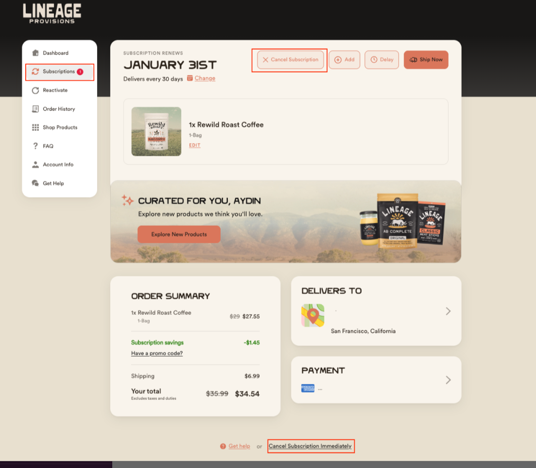 Option 1: Cancel From Your Subscription Page